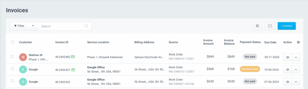 - Go to Invoices and click the View icon against the desired invoice.