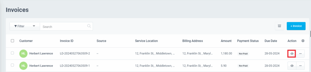 - Go to Invoices and click the View icon against the desired invoice.