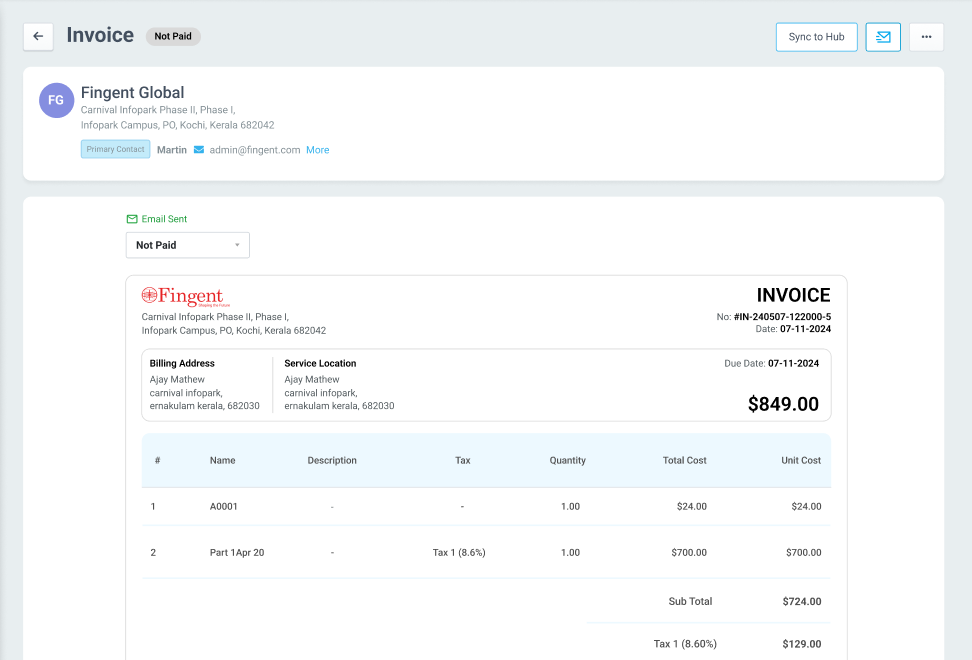- You may view that the invoice is sent from the Invoice Details page also. The invoices sent will be marked as Email sent.