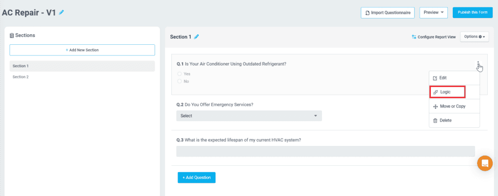 Logic is a condition applicable for a question. This is applicable only for multiple-choice and drop-down questions only.
