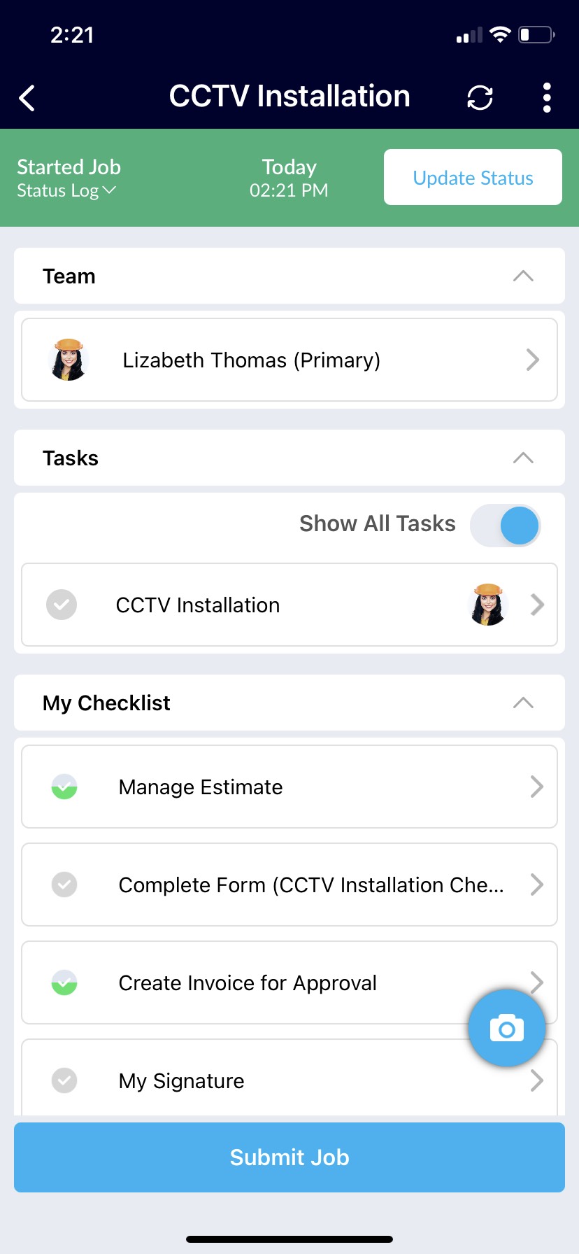 - Anytime Image Capture feature is depicted by a floating camera icon at the bottom right corner of all Job screens. The icon will be visible upon downloading the Job.